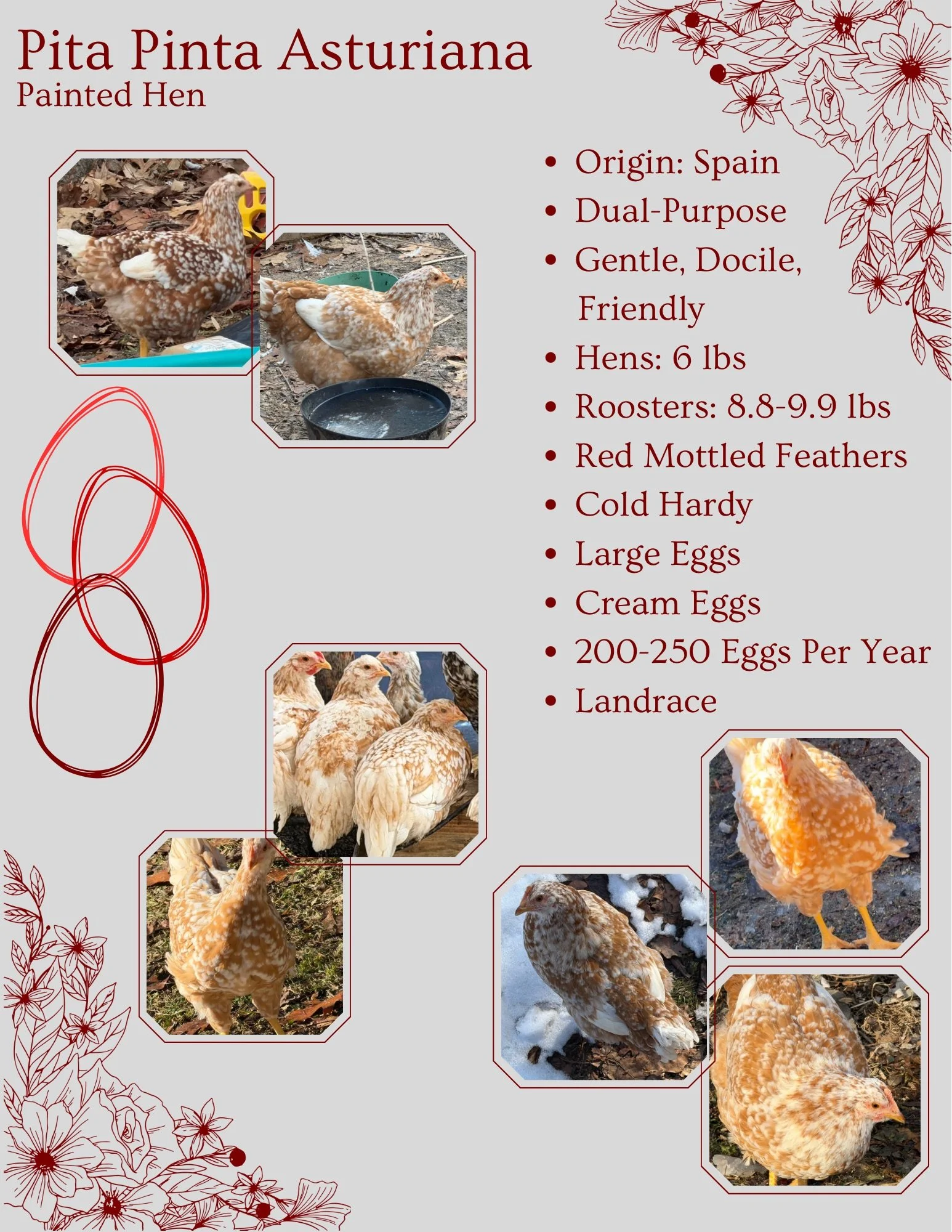 Some information about Pita Pinta chickens and some pictures of our current birds.