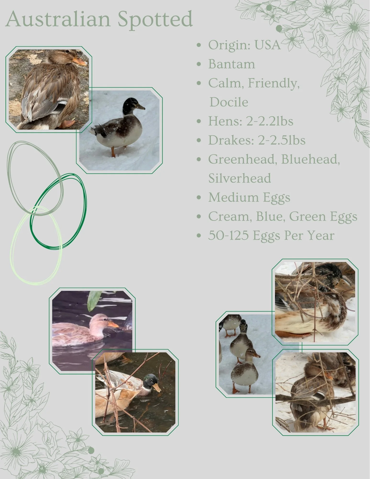 Some information about Australian Spotted Ducks and pictures of our birds.